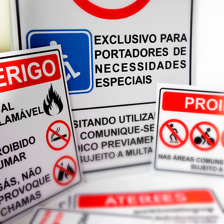 ✔️ Placas de segurança e advertência