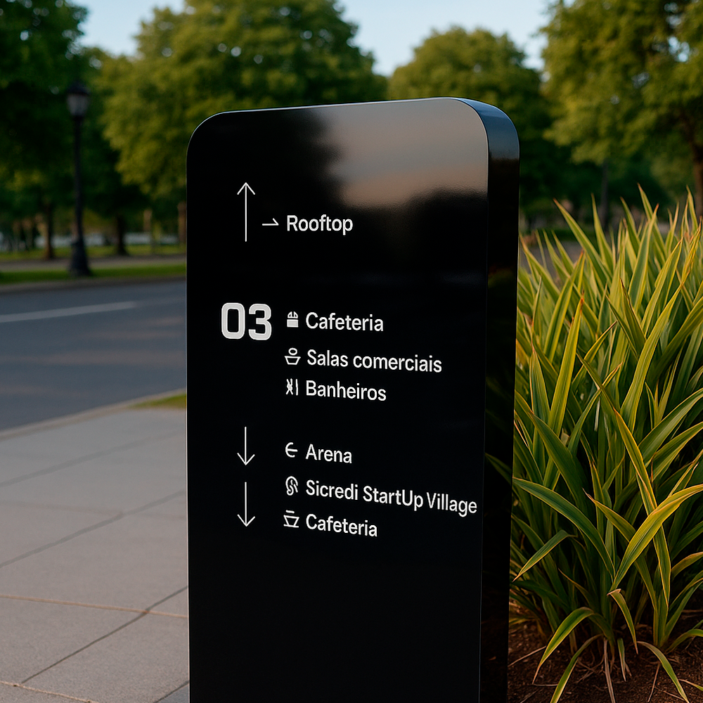 Produzimos totens personalizados, desenvolvidos sob medida para refletir sua identidade visual com precisão. Utilizamos materiais de alta durabilidade como ACM, aço galvanizado, PVC e acrílico, garantindo resistência ao tempo, sol, chuva e outras variações climáticas.